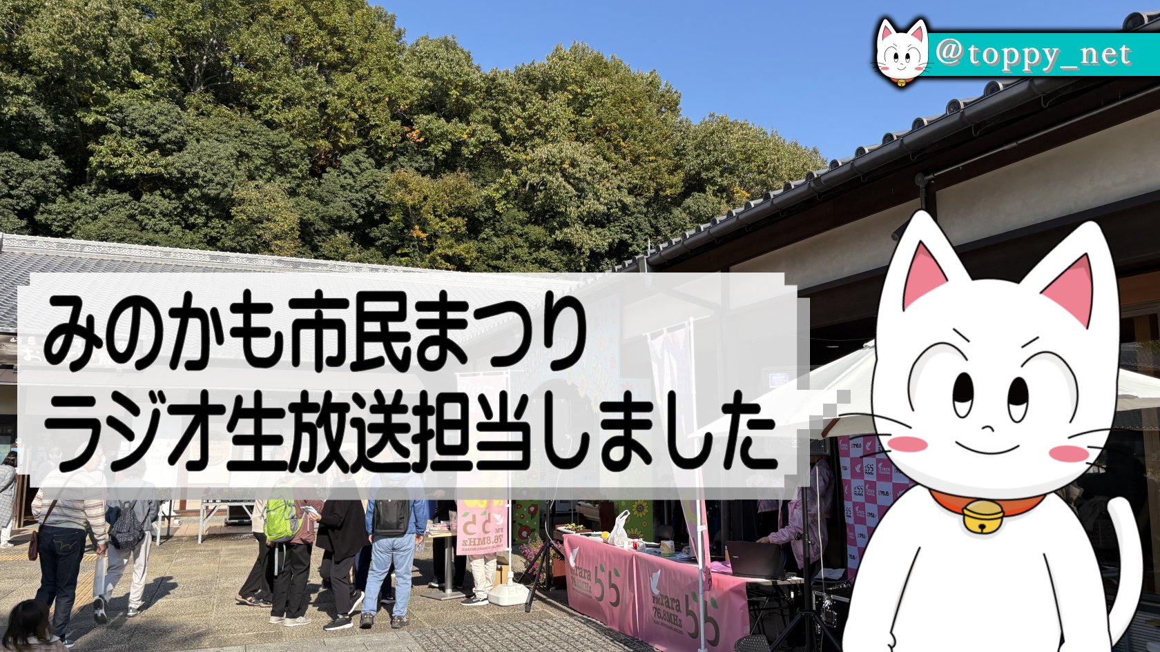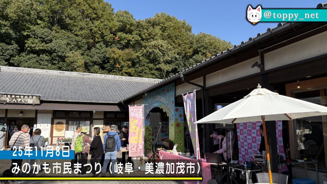 毎年恒例、岐阜県美濃加茂市のぎふ清流里山公園で11月上旬に開催される「みのかも市民まつり」の会場からの生放送を今年も3時間担当しました。8日・9日の土日の2日間、地元の特産品や農産物、飲食や雑貨など様々なブースが並び多くの人が賑わうお祭りでして、公開生放送は初日の8日(土)の10時から3時間。事前に全店舗を取材して番組にのぞみました。